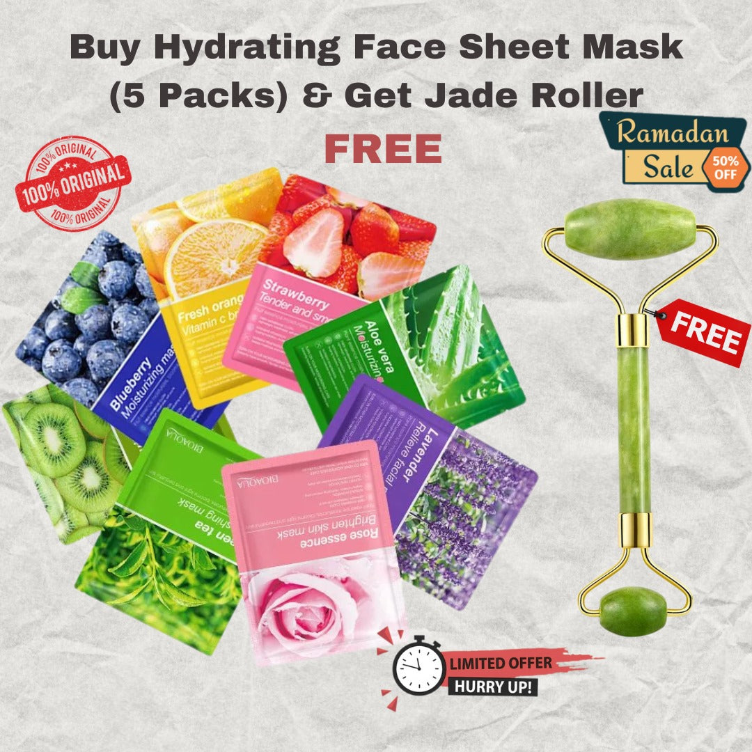 Hydrating Face Sheet Masks (Pack of 5) & Get Jade Roller FREE